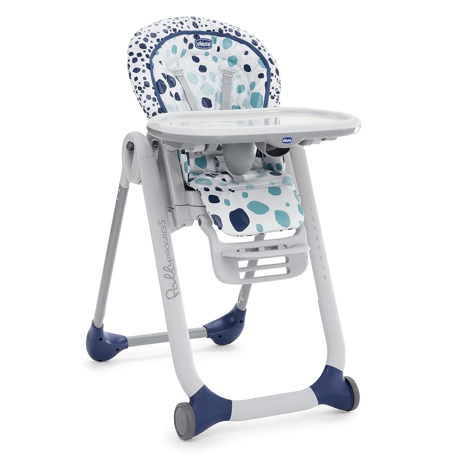 La silla de esta oferta Polly Progres5 que os traemos, tiene posición hamaca, trona, primera silla y de elevador. Disfruta las 5 fases, del crecimiento de tu bebe sin cambiar la misma. Es regulable en 8 alturas y reclinable en 4 posiciones, con bandeja extraible y regulable.
